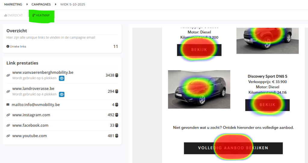 Want to know which buttons, images or other hyperlinks were clicked from a sent e-mailing? You can do so via the heatmap.