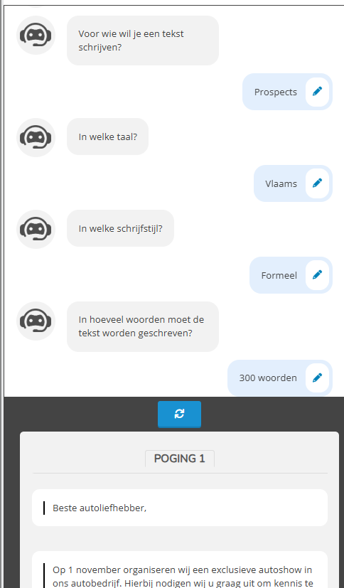 The text can be rewritten without limit and you can make your own adjustments. In subsequent communications, what you have previously generated in terms of texts is taken into account to deliver customised texts even faster.