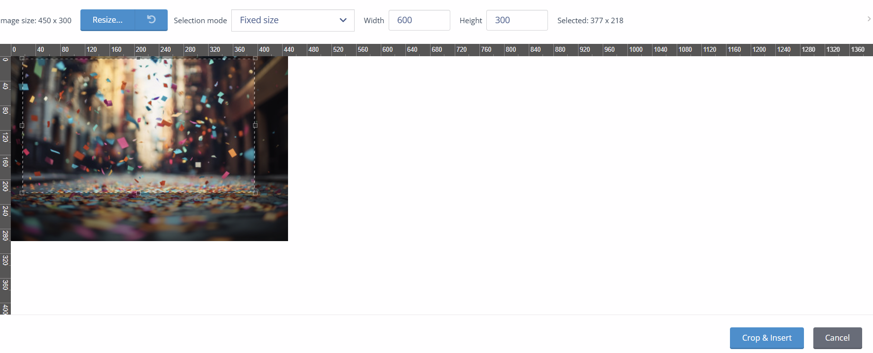 Réduisez l'image originale et recadrez-la à la taille que vous souhaitez utiliser dans le modèle de courrier électronique. Cliquez sur "Crop & insert".