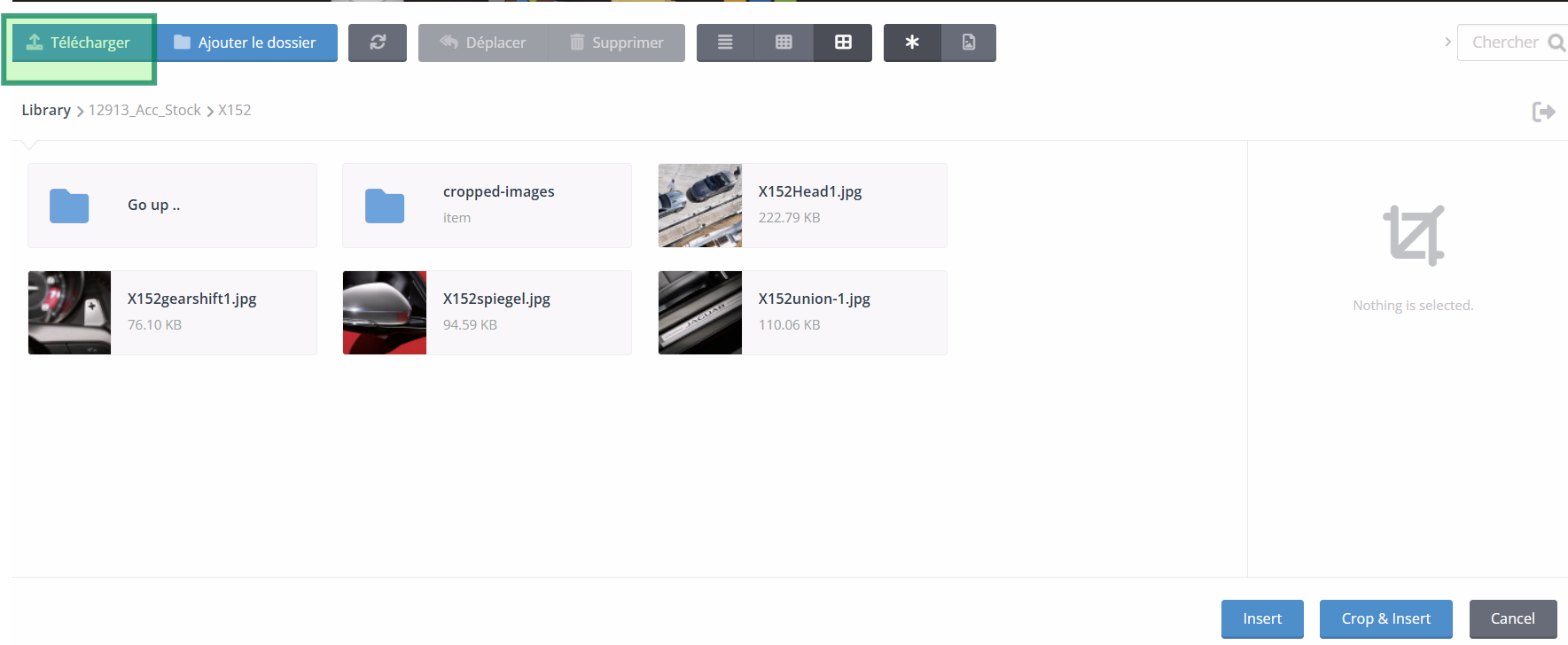 Sélectionnez une image sur votre ordinateur et ajoutez-la à la banque d'images. Sélectionnez ensuite l'image et cliquez sur "Crop & insert".